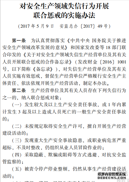 對安全生產(chǎn)領(lǐng)域失信行為開展 聯(lián)合懲戒的實施辦