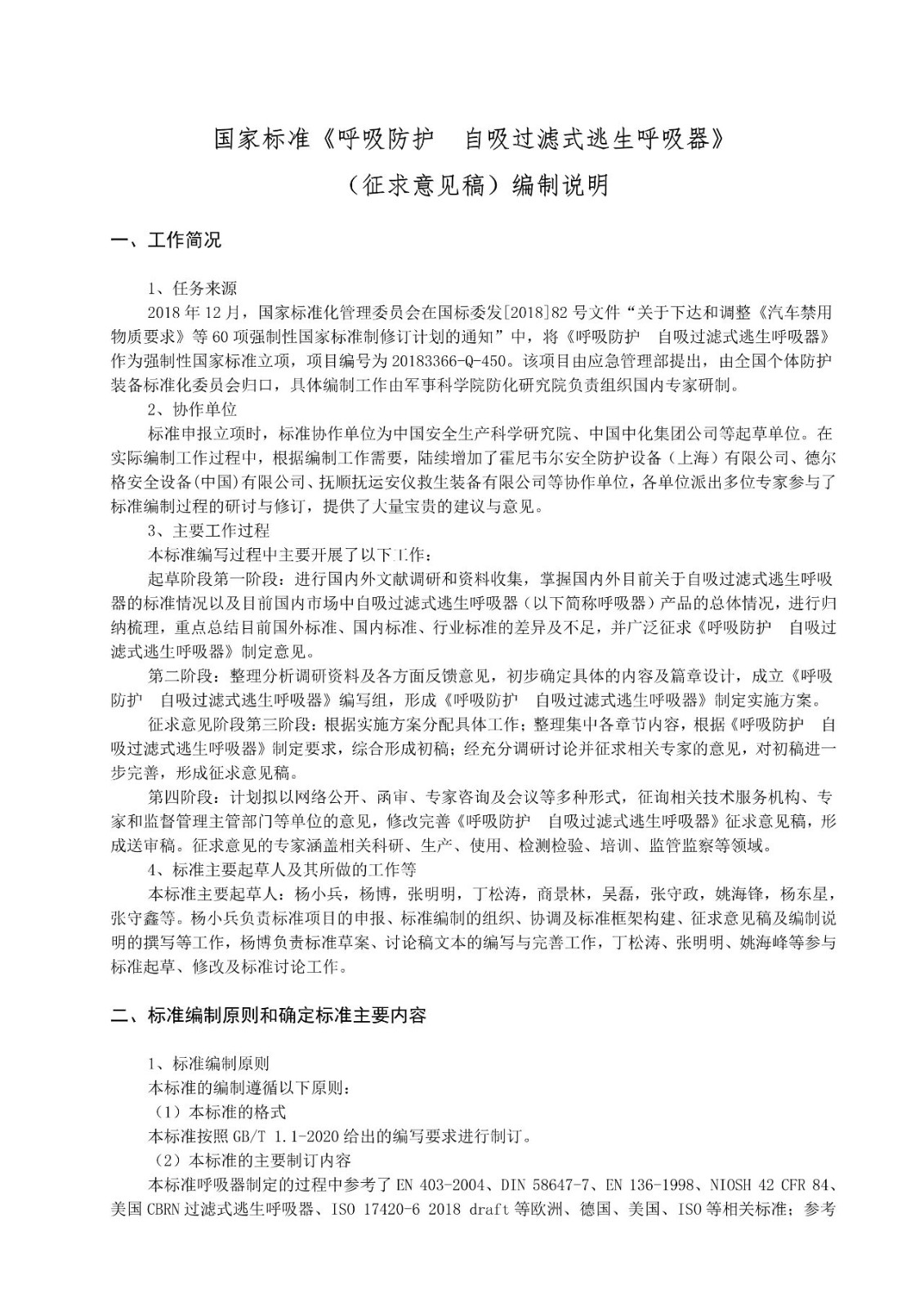 國(guó)家標(biāo)準(zhǔn)《呼吸防護(hù)自吸過濾式逃生呼吸器(征求意見稿)》公開征求意見