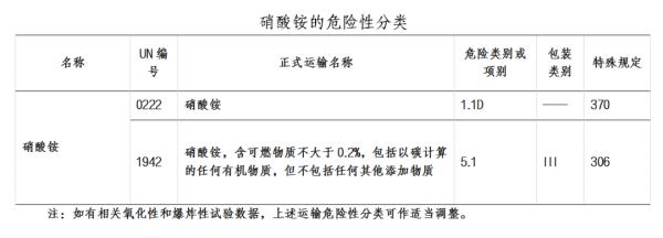 按照《危險(xiǎn)化學(xué)品目錄》(2015年),硝酸銨分為兩種,其危險(xiǎn)性分類有: