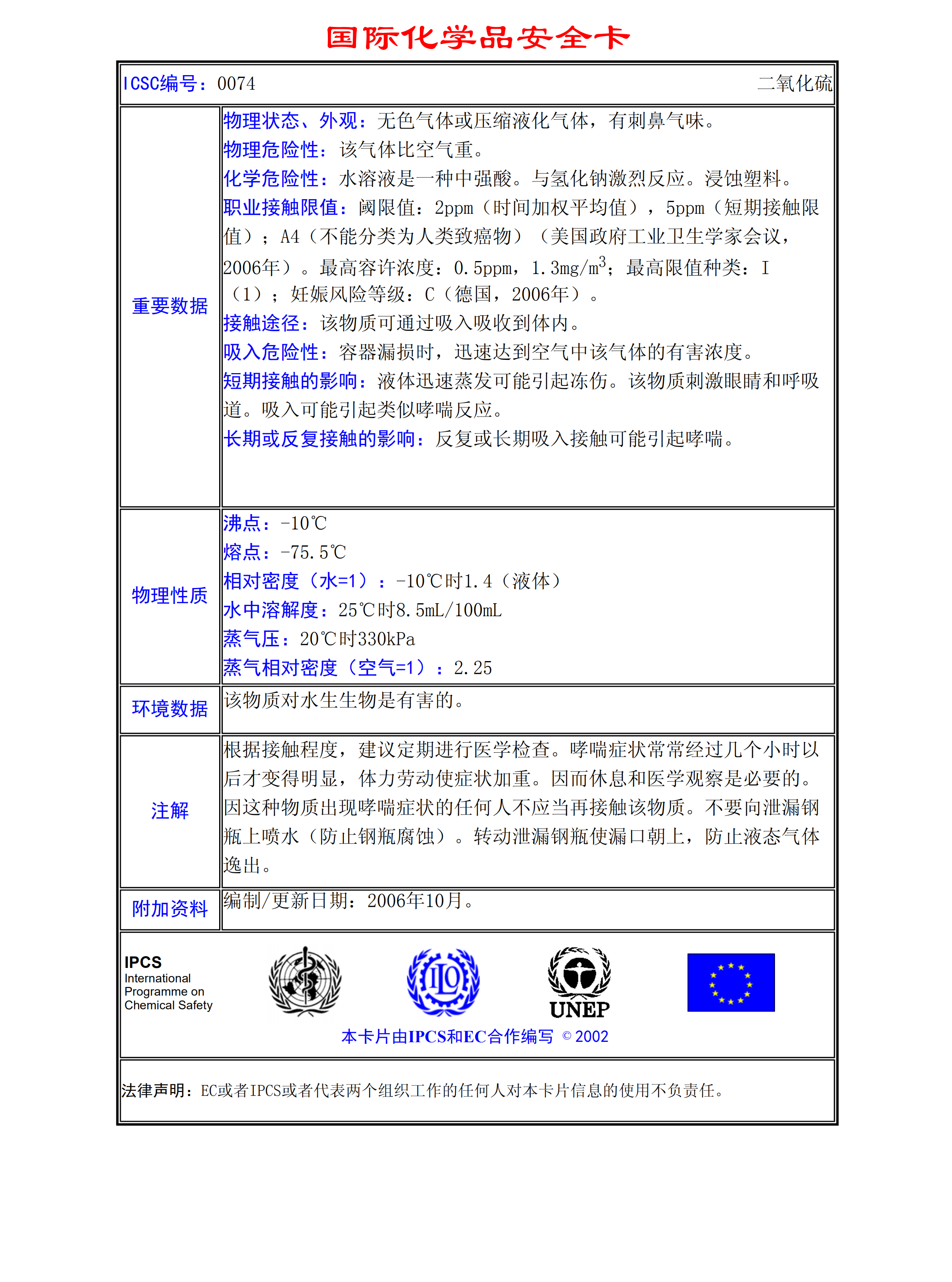 二氧化硫MSDS