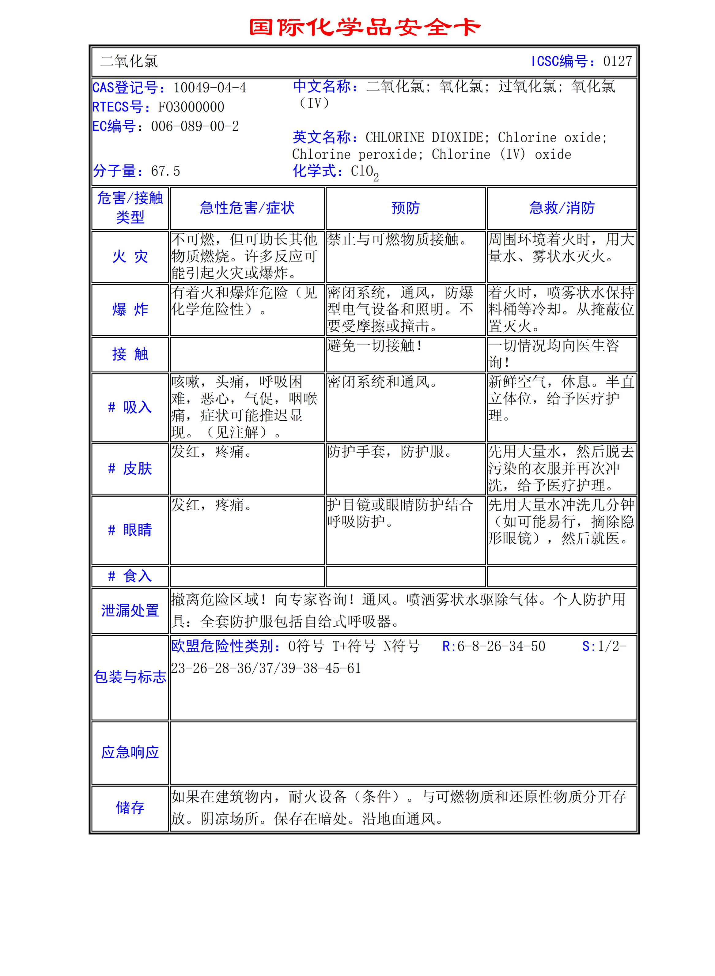 二氧化氯MSDS