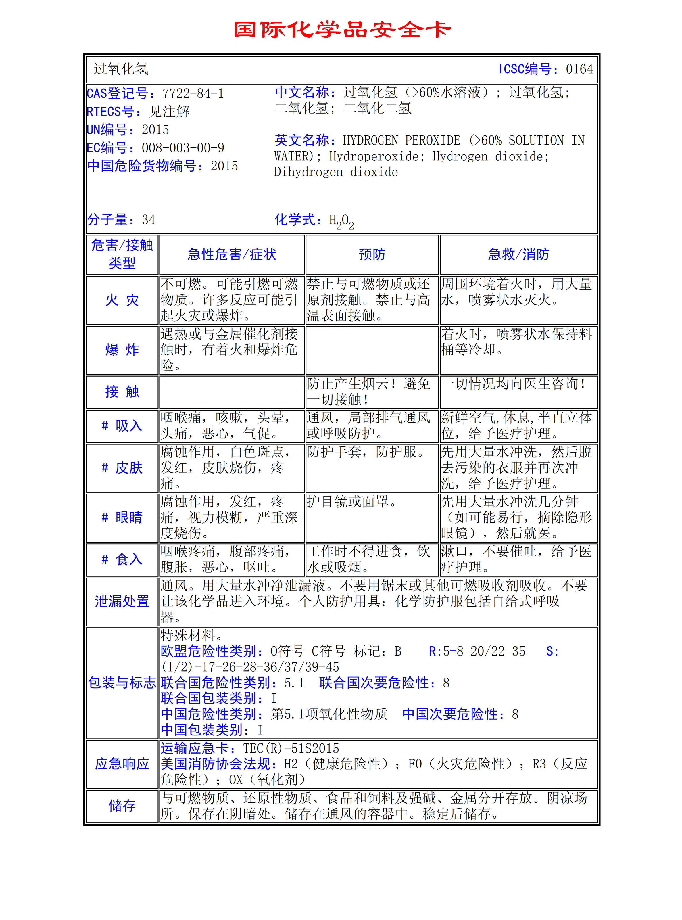 過氧化氫MSDS