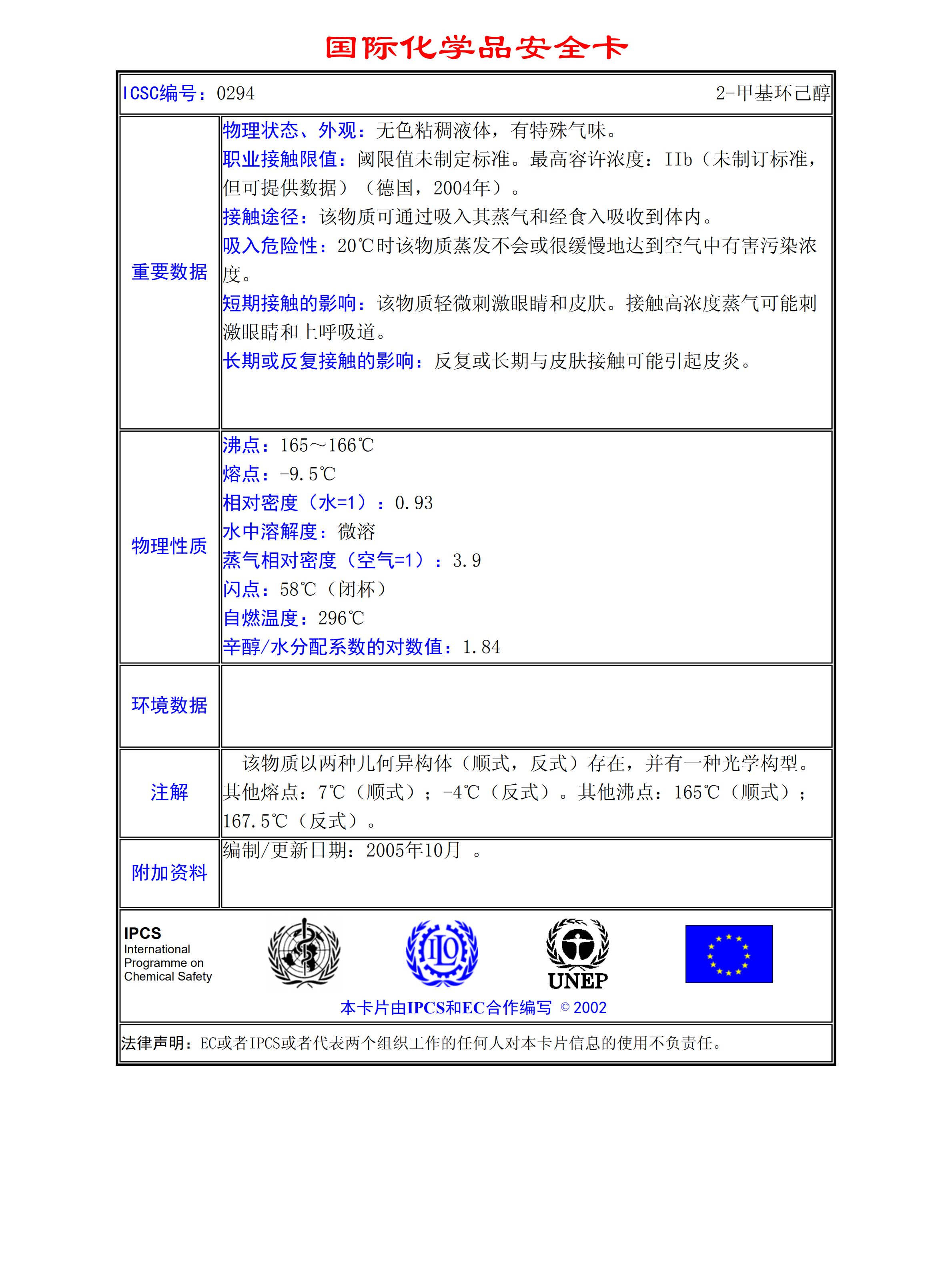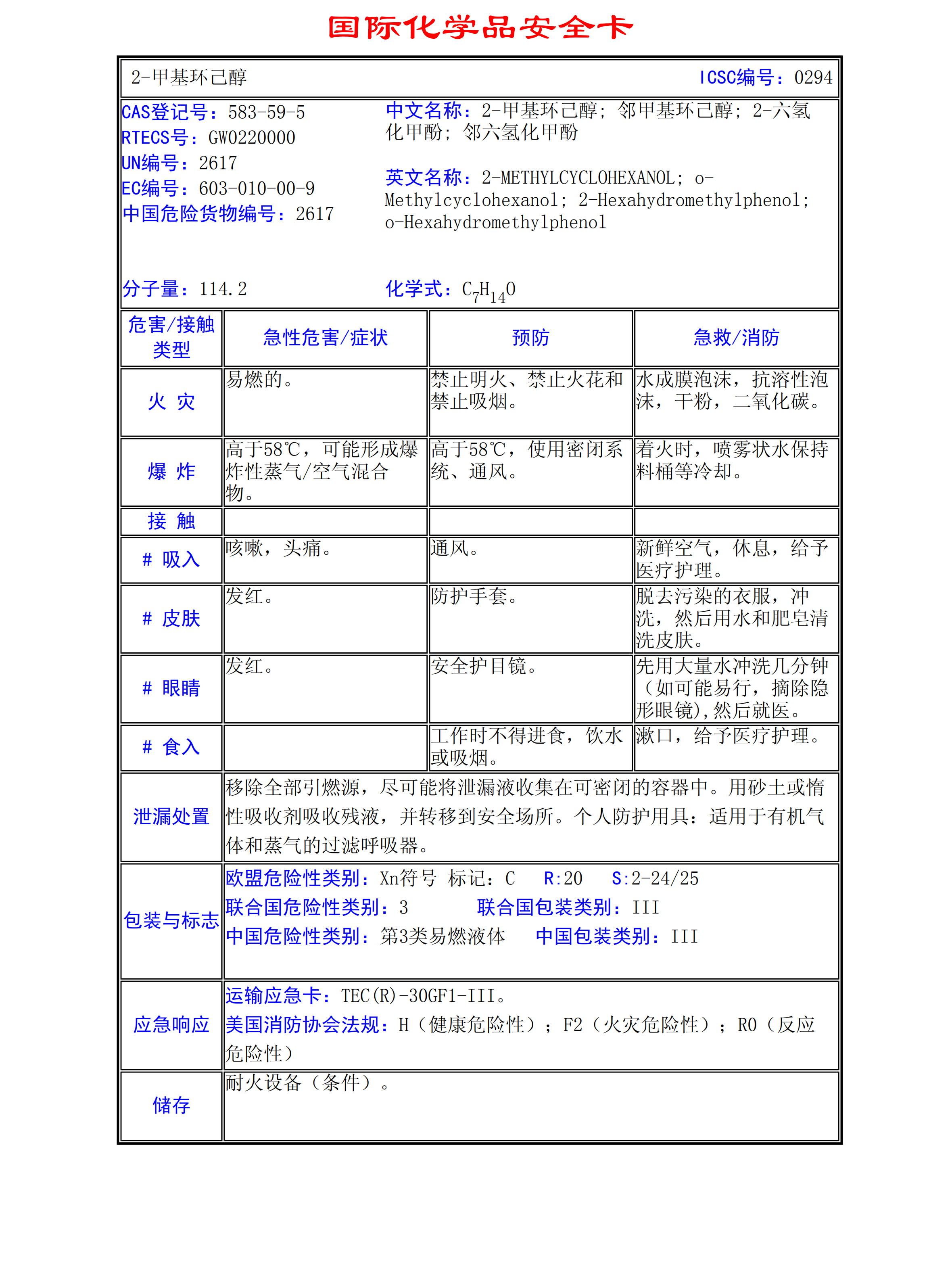 2-甲基環(huán)己醇MSDS