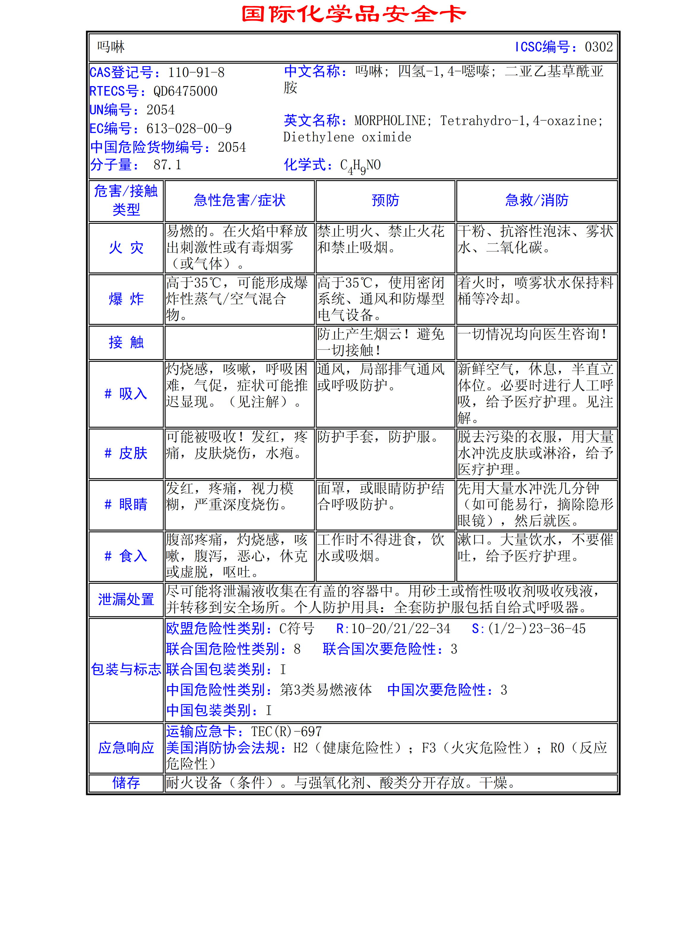 嗎啉MSDS