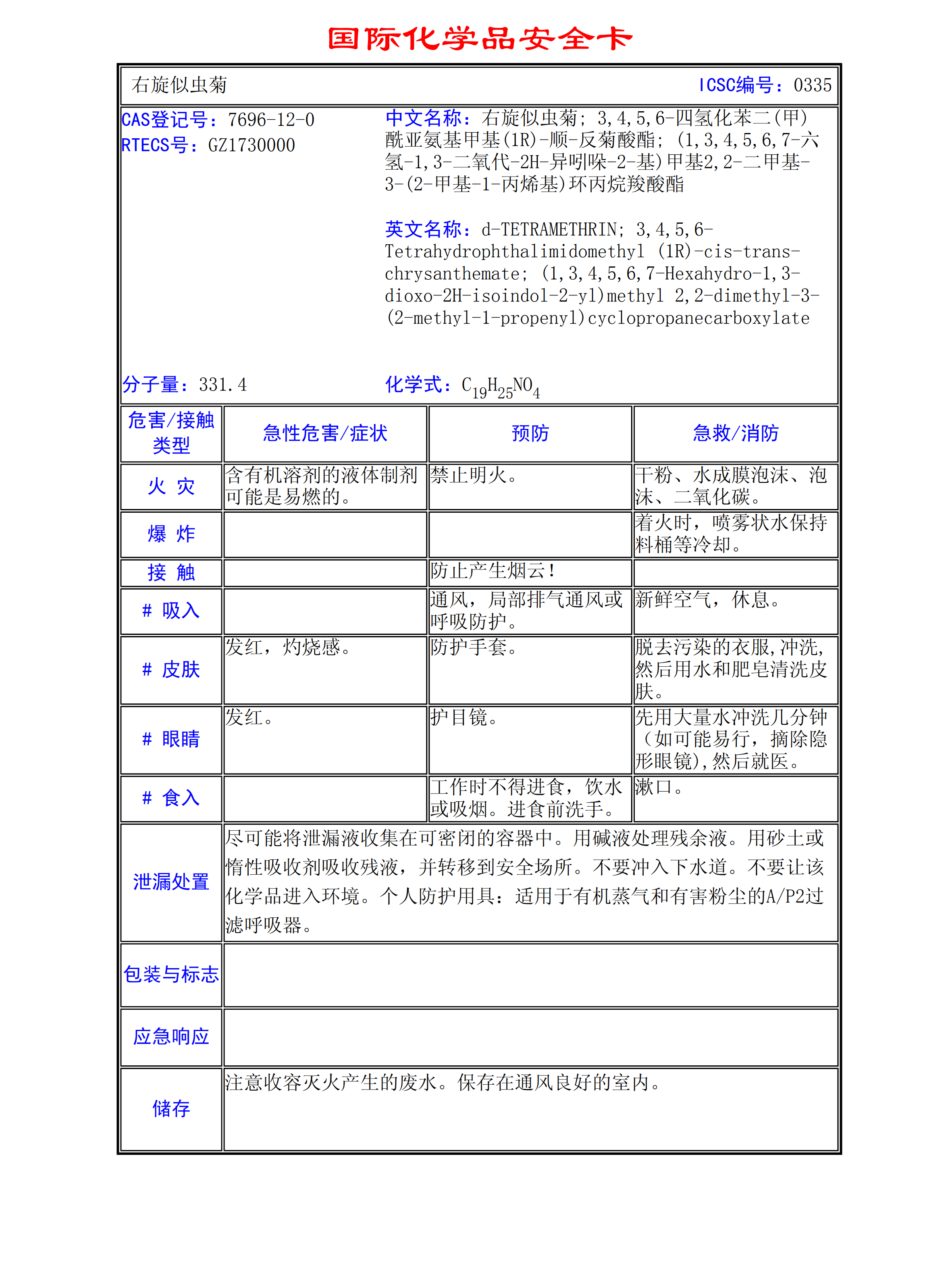 右旋似蟲(chóng)菊MSDS