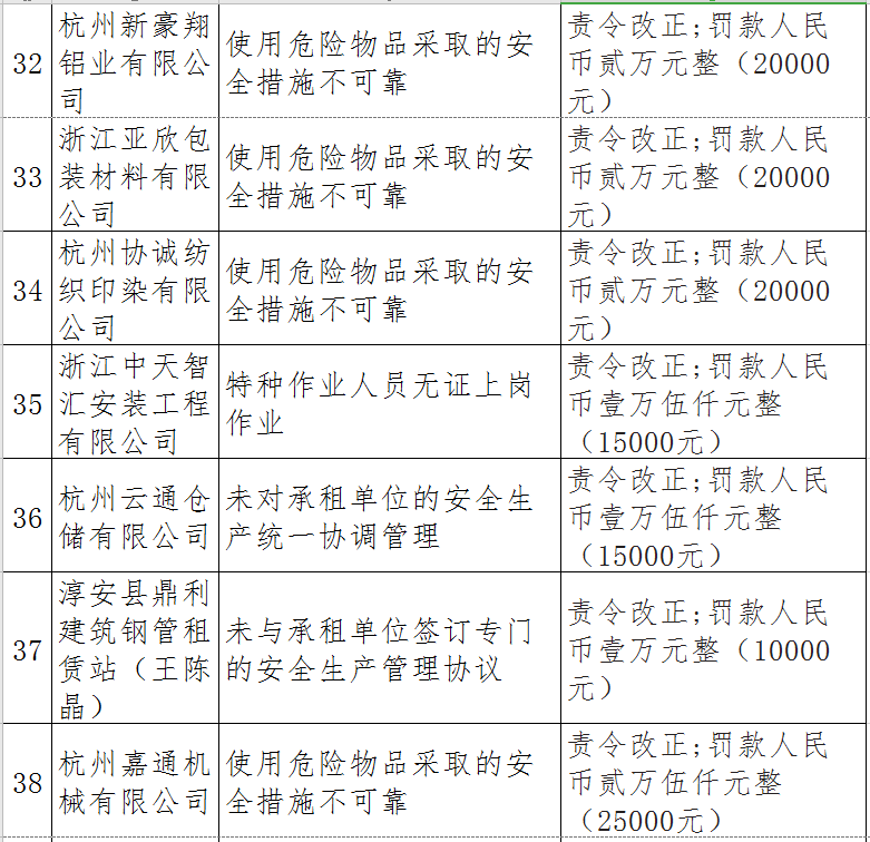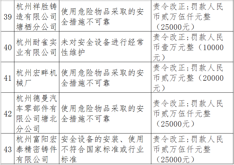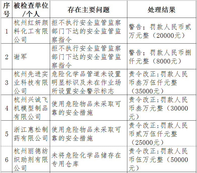 近日,杭州市應急管理局對50多家被行政處罰的企業(yè)(個人)進行曝光