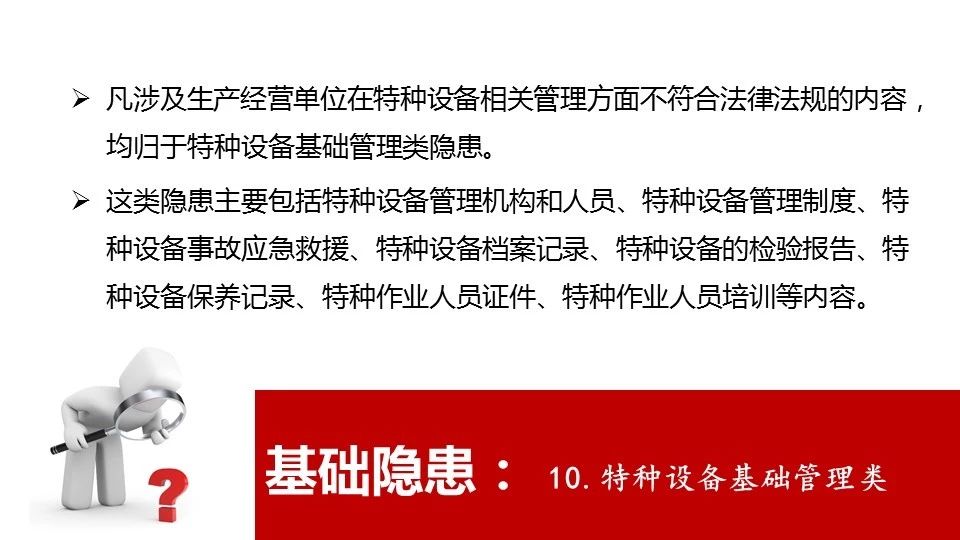 18 | 危險物品的容器、運輸工具,以及涉及人身安全、危險性較大的海洋石油開采特種設備和礦山井下特種設備未經(jīng)具有專業(yè)資質的機構檢測、檢驗合格,取得安全使用證或者安全標志,投入使用的 |