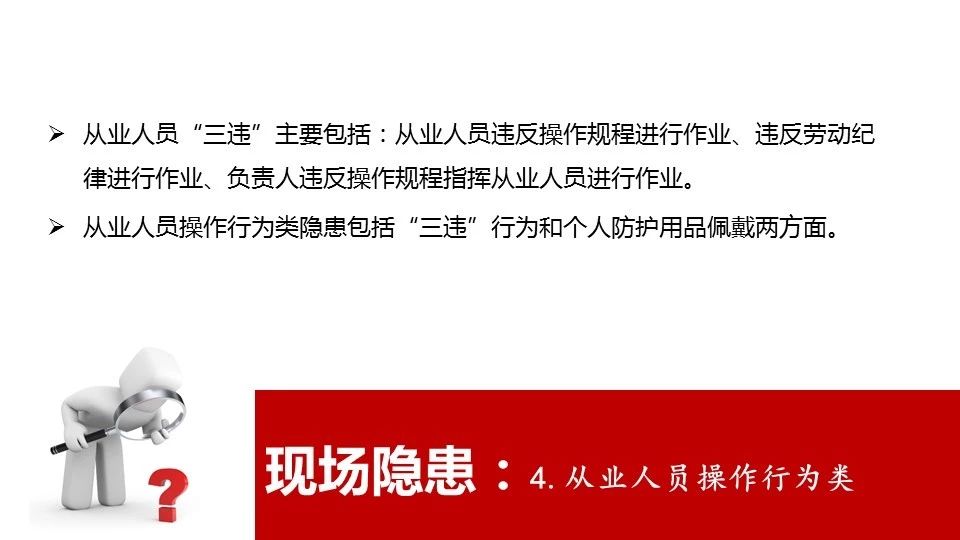 作業(yè) 安全 | 進行爆破、吊裝以及國務院安全生產(chǎn)監(jiān)督管理部門會同國務院有關部門規(guī)定的其他危險作業(yè),未安排專門人員進行現(xiàn)場安全管理的 | 責令限期改正,可以處十萬元以下的罰款 | 責令停產(chǎn)停業(yè)整頓,并處十萬元以上二十萬元以下的罰款,對其直接負責的主管人員和其他直接責任人員處二萬元以上五萬元以下的罰款 |