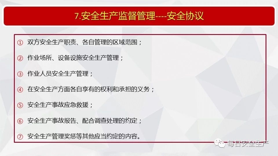 27 | 生產(chǎn)經(jīng)營單位未與承包單位、承租單位簽訂專門的安全生產(chǎn)管理協(xié)議或者未在承包合同、租賃合同中明確各自的安全生產(chǎn)管理職責,或者未對承包單位、承租單位的安全生產(chǎn)統(tǒng)一協(xié)調、管理的 |
