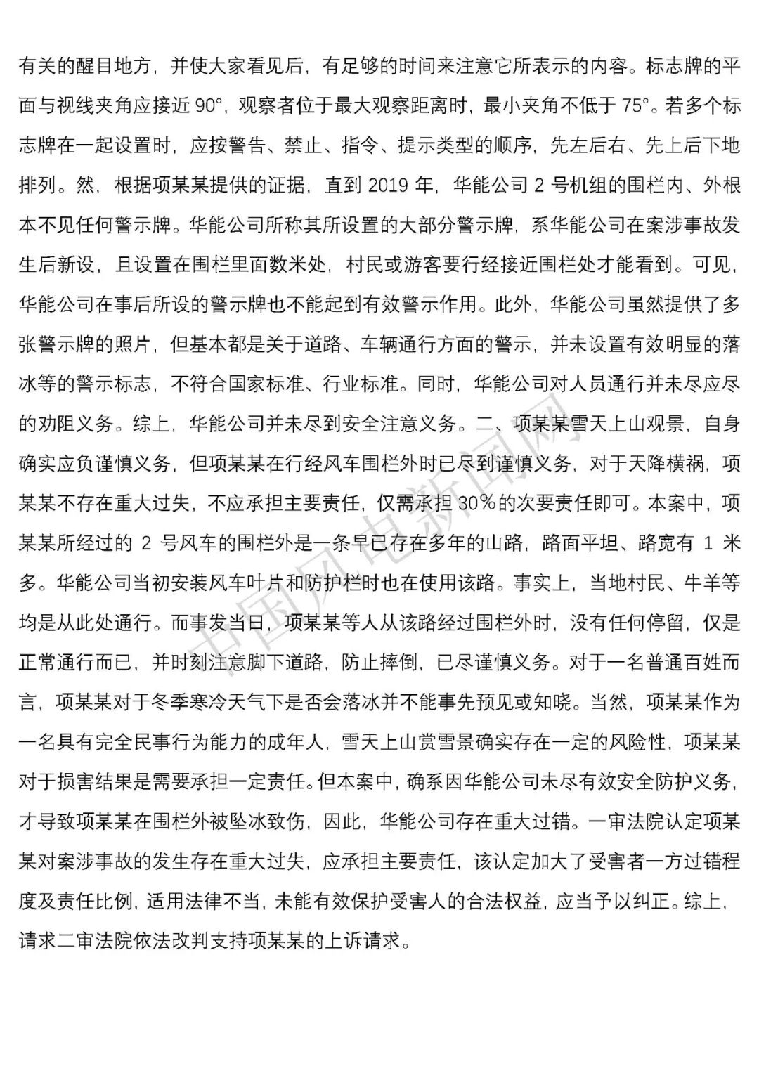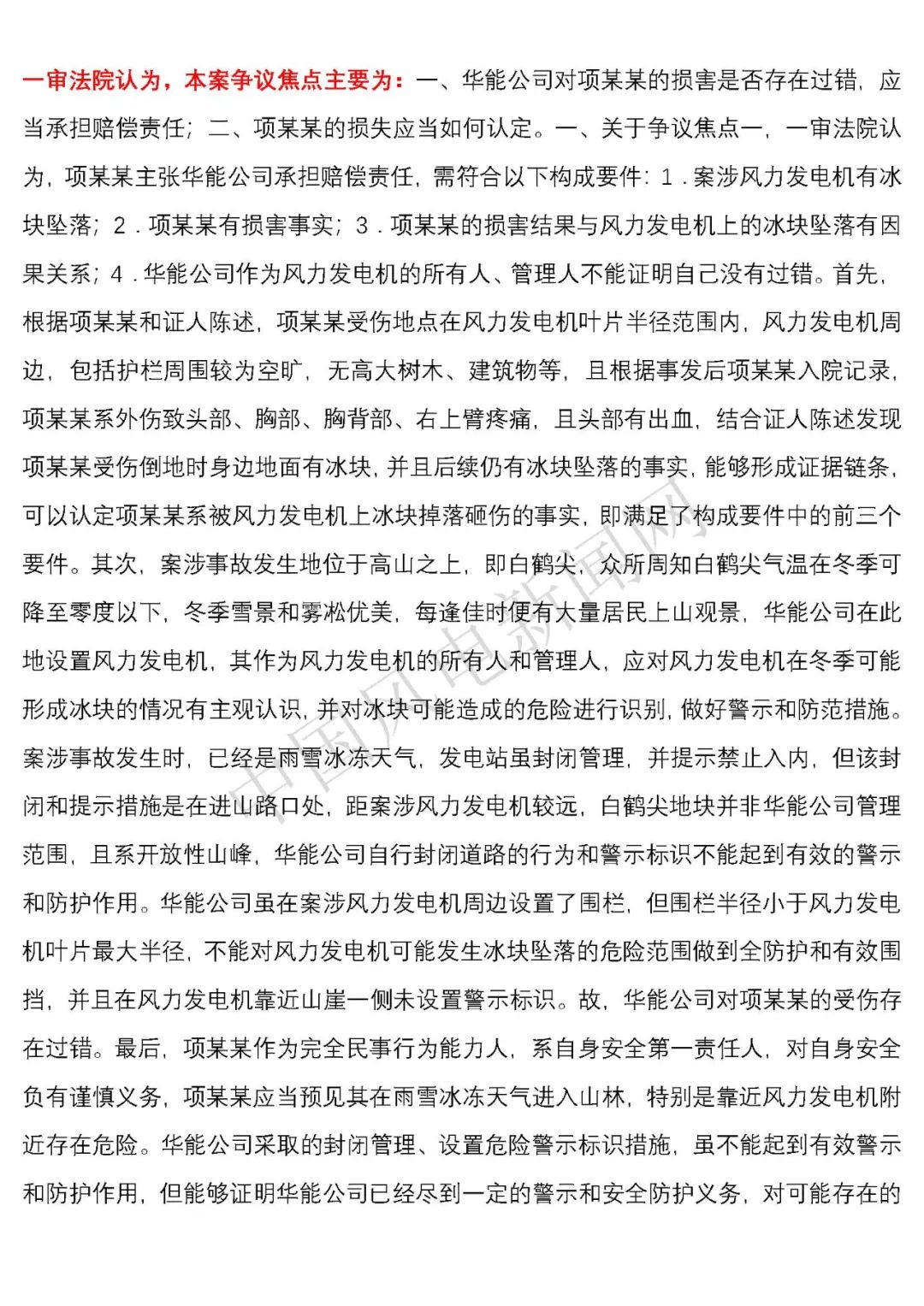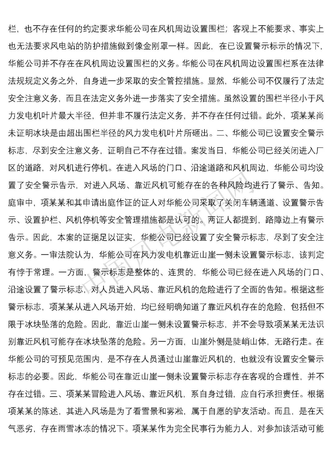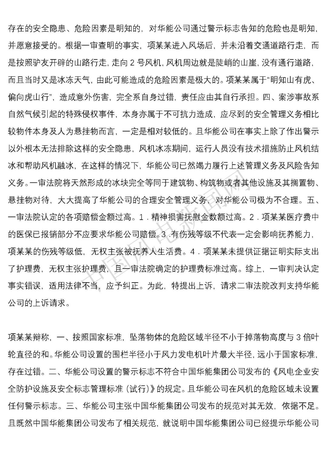 華能浙江某風(fēng)電場葉片結(jié)冰冰塊掉落砸傷路人案宣判