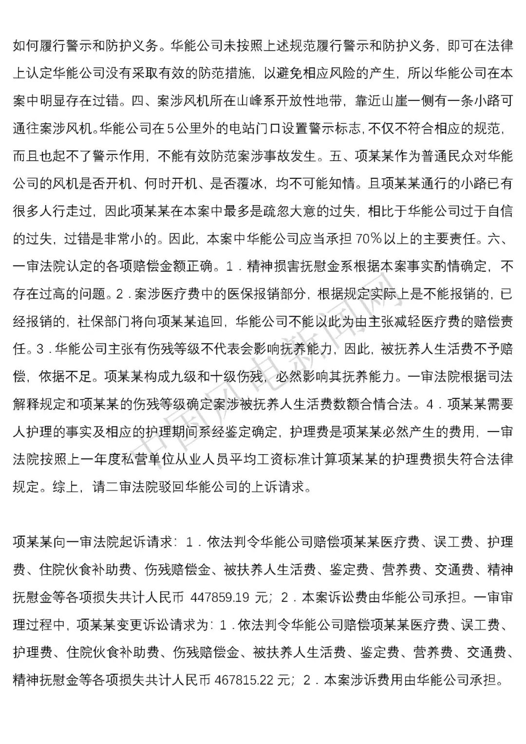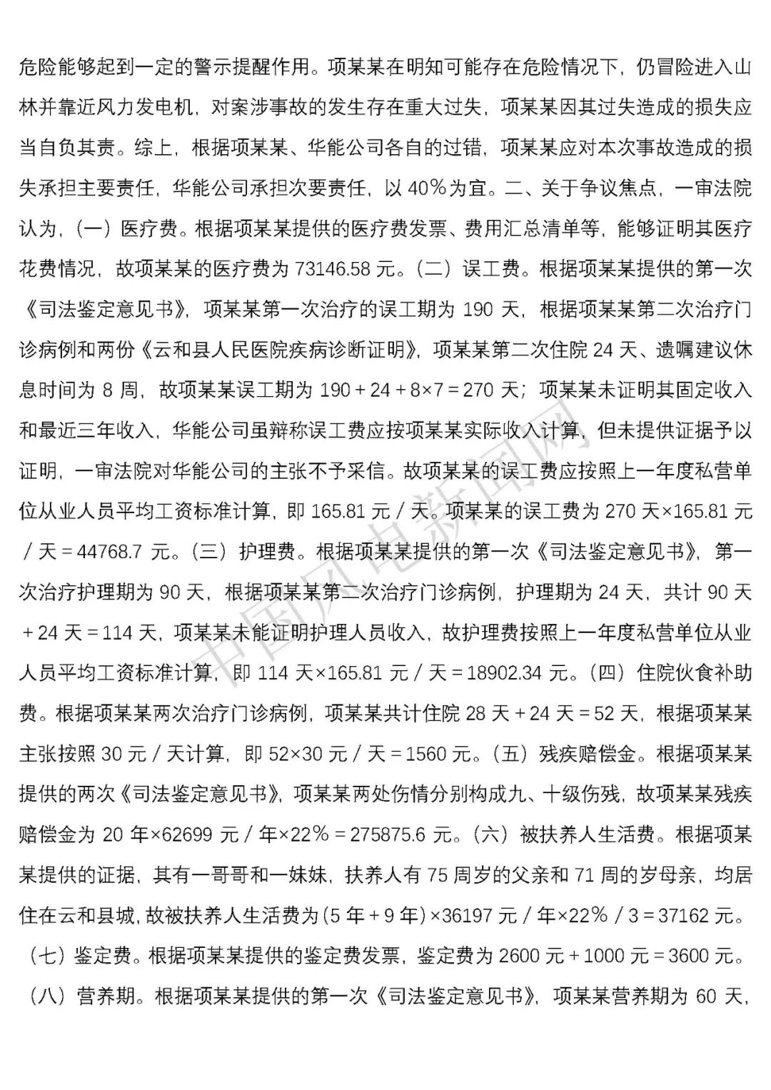 法院判決:一、華能云和風(fēng)力發(fā)電有限公司于判決生效之日起十日內(nèi)賠償項(xiàng)建英損失182934.09元;二、華能云和風(fēng)力發(fā)電有限公司于判決生效之日起十日內(nèi)賠償項(xiàng)建英精神撫慰金8000元;三、駁回項(xiàng)建英其他訴訟請求。
