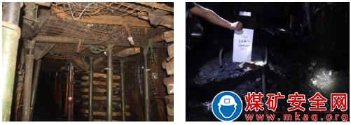 巷道支護(hù)系統(tǒng)沒有承受住強(qiáng)動載沖擊。事故巷道沿底板托頂煤掘進(jìn),上部為頂煤和泥巖組成的復(fù)合頂板,節(jié)理發(fā)育,受到?jīng)_擊后易碎脹破壞。從事故現(xiàn)場情況看,礦井按照《煤巷錨桿支護(hù)技術(shù)規(guī)范》設(shè)計的巷道支護(hù),但這次沖擊載荷超過現(xiàn)支護(hù)的承載能力,造成事故區(qū)域巷道破壞。