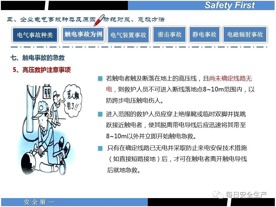 遇到觸電事故,現(xiàn)場救援必須注意以下幾點: