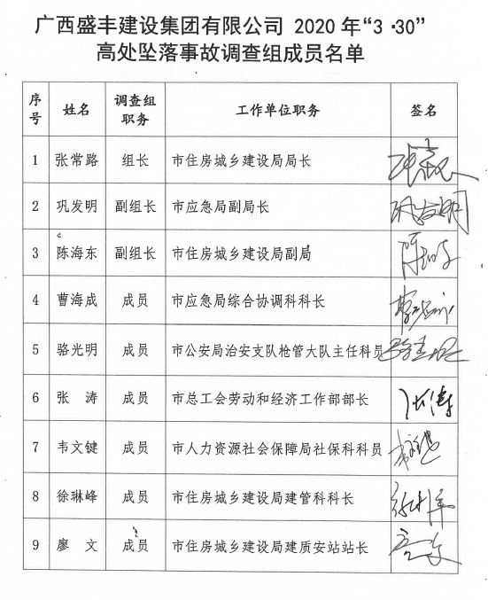 廣西盛豐建設(shè)集團有限公司中央商務(wù)區(qū)·翡翠園15號樓工程2020年“3·30”高處墜落事故調(diào)查