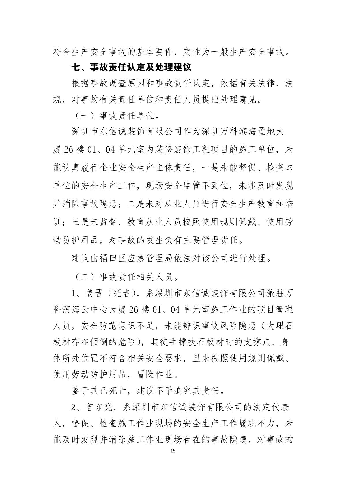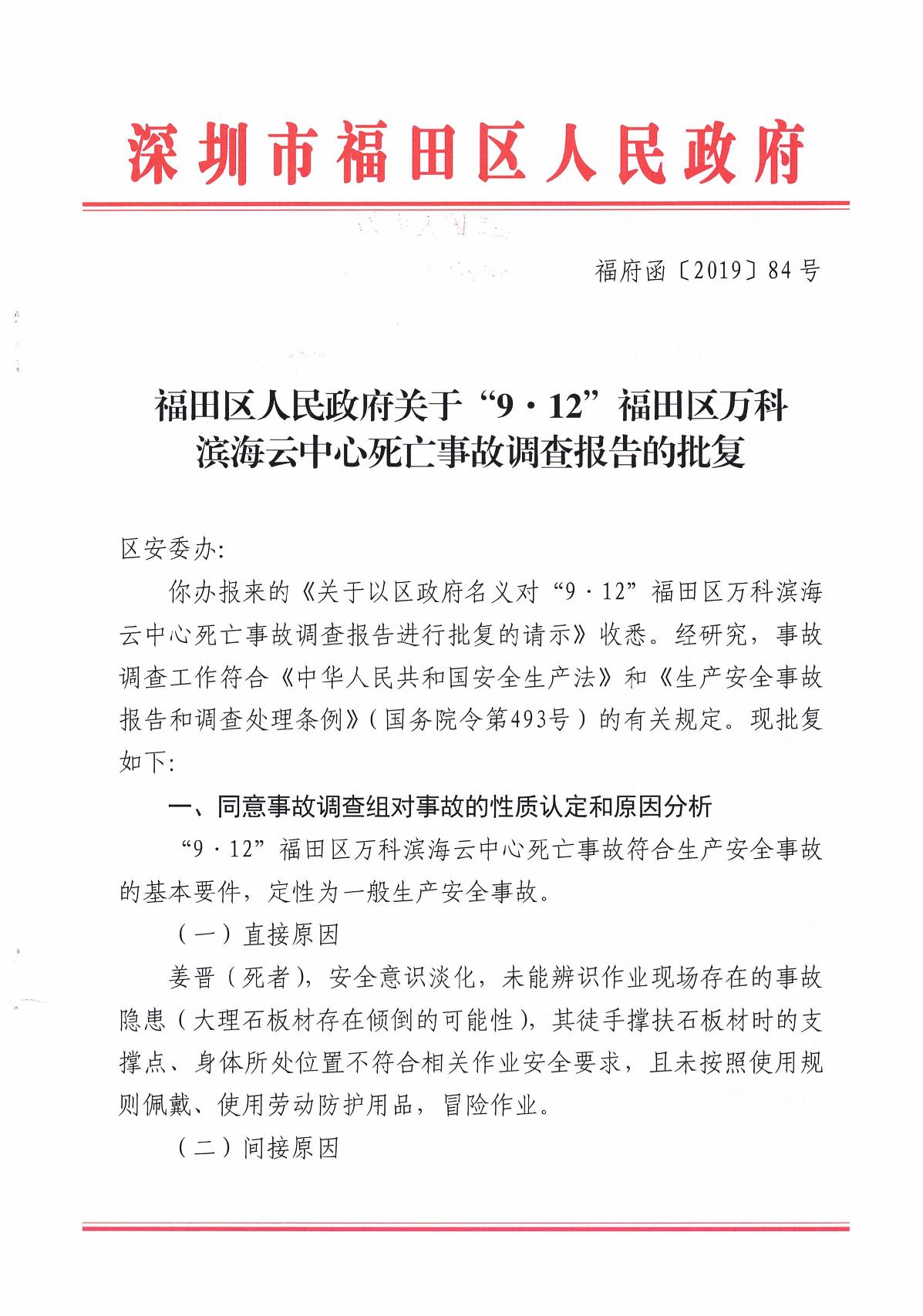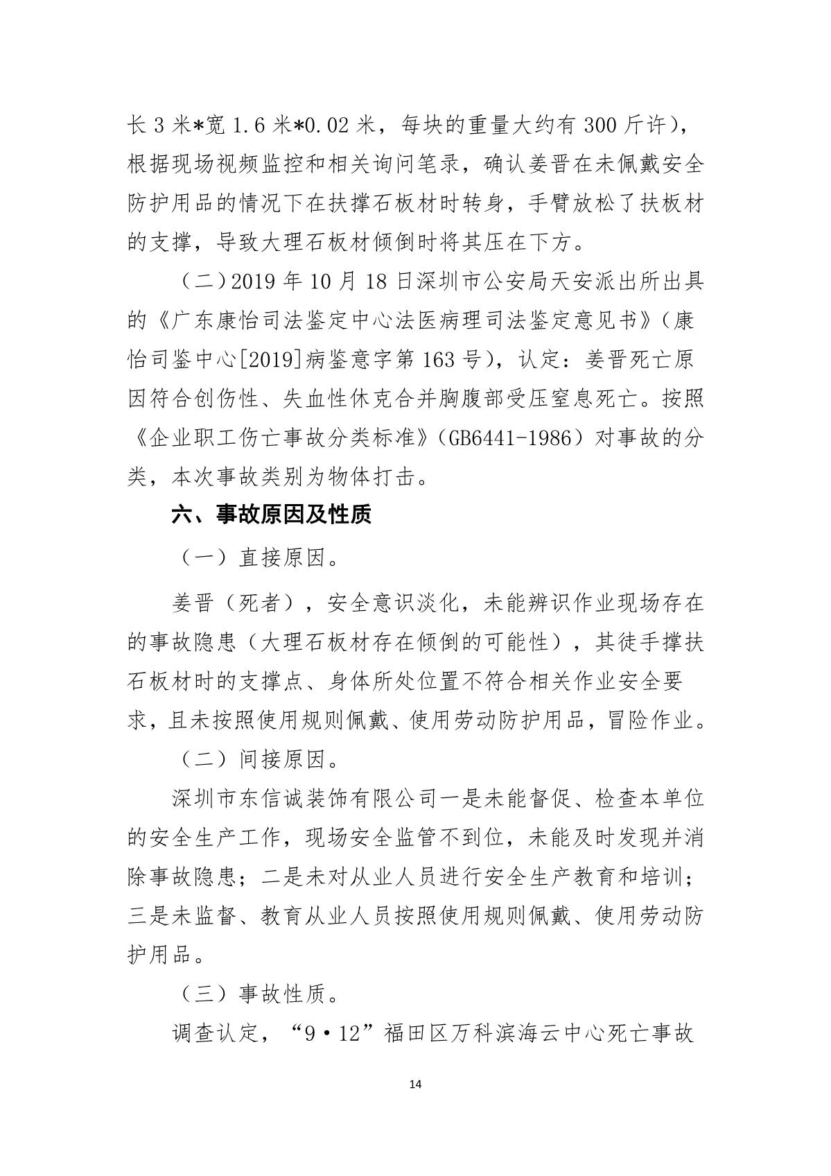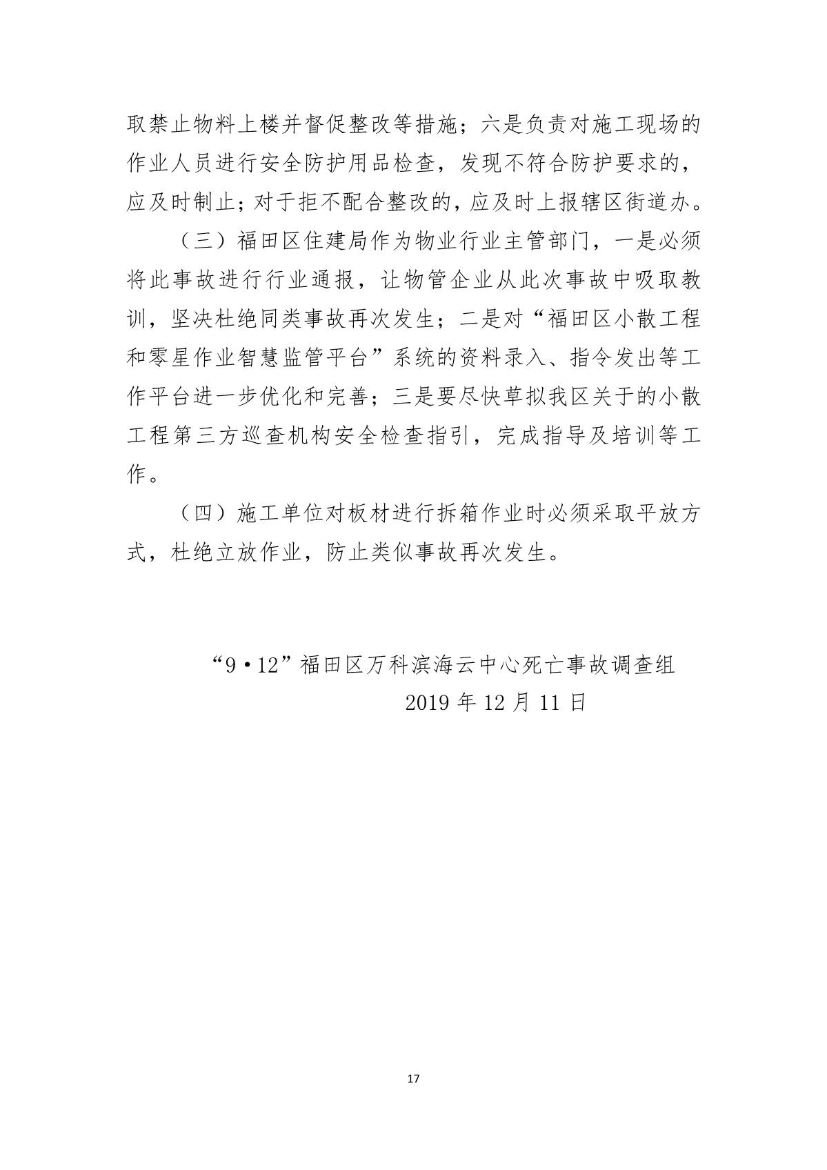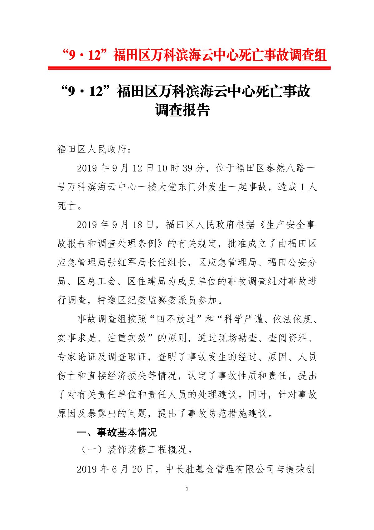 “9.12”福田區(qū)萬科濱海云中心死亡事故調(diào)查報告