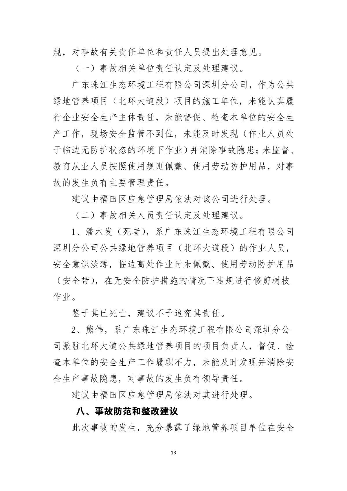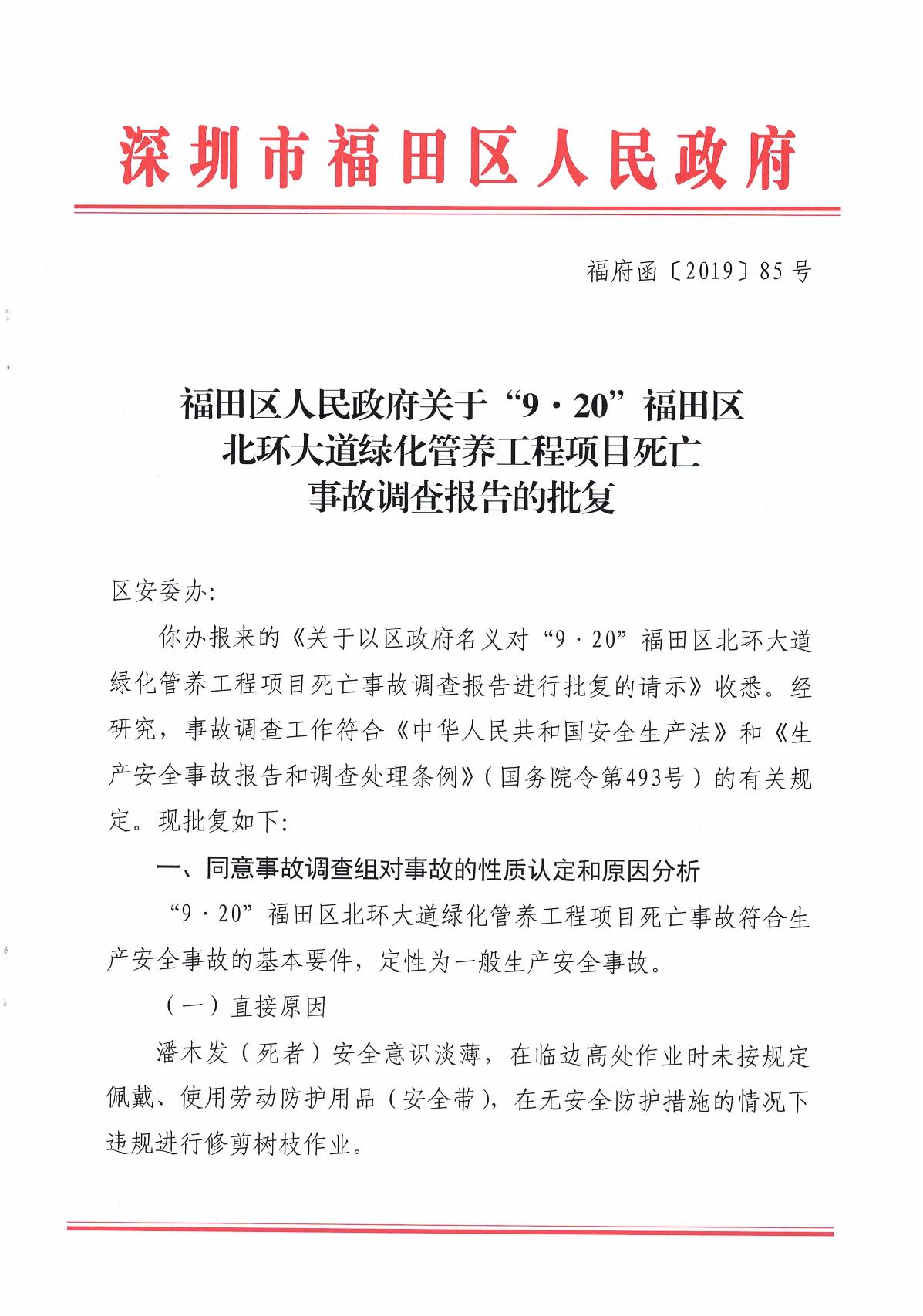“9.20”福田區(qū)北環(huán)大道綠化管養(yǎng)工程項(xiàng)目死亡事故調(diào)查報(bào)告