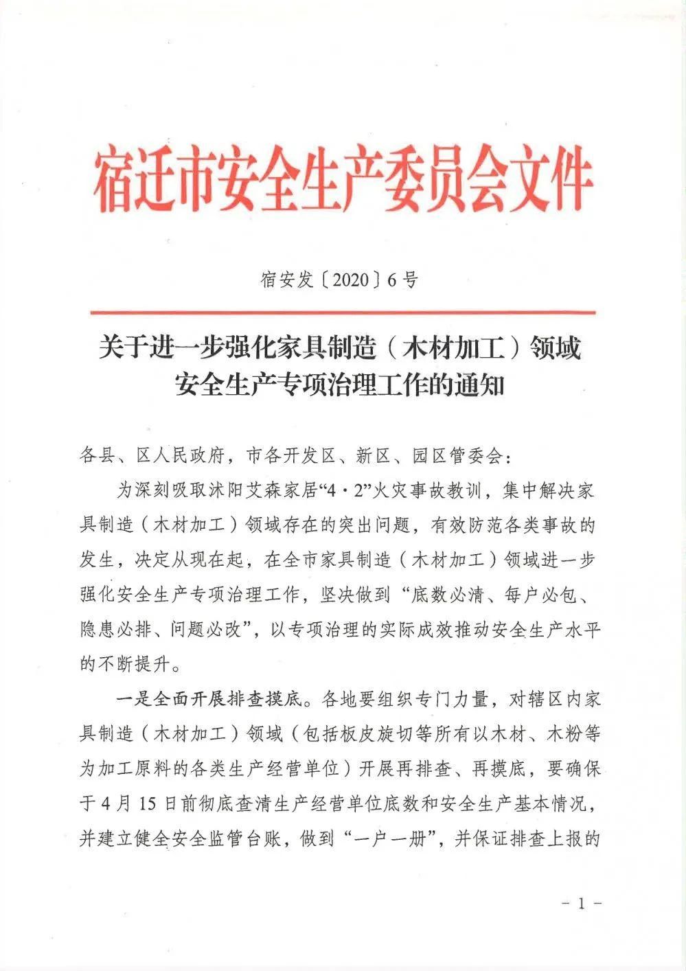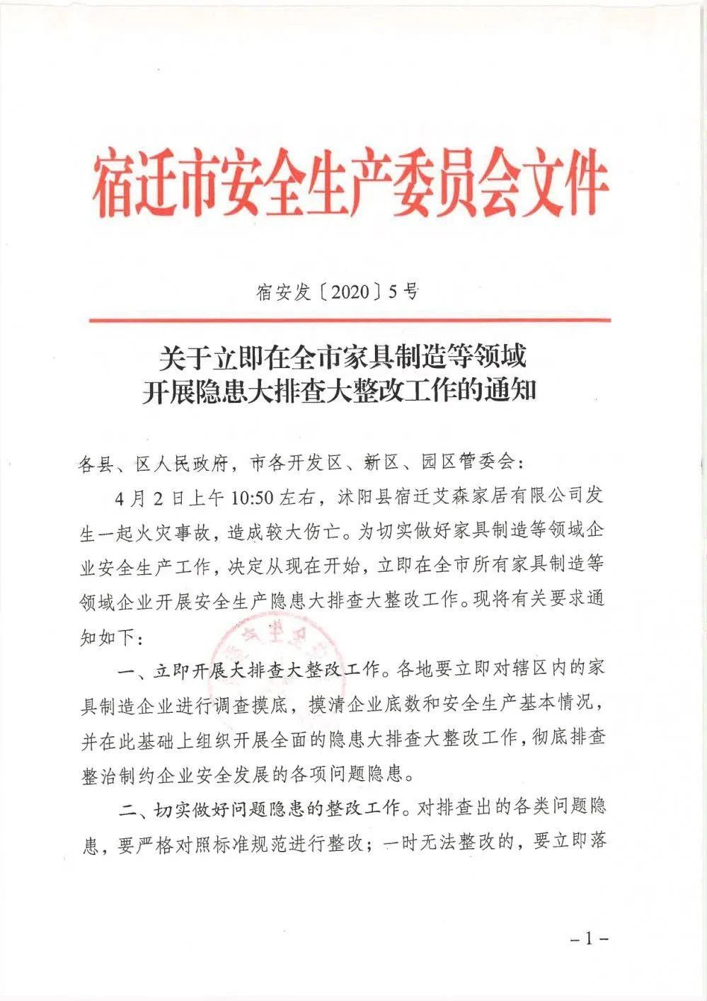 宿遷安監(jiān)消息:近日,宿遷市安委會連續(xù)發(fā)出5號、6號文件,安委辦發(fā)出16號文件,要求開展專項治理。安委辦16號文件特別提出要重點做好家具制造噴涂環(huán)節(jié)的隱患排查整改工作。