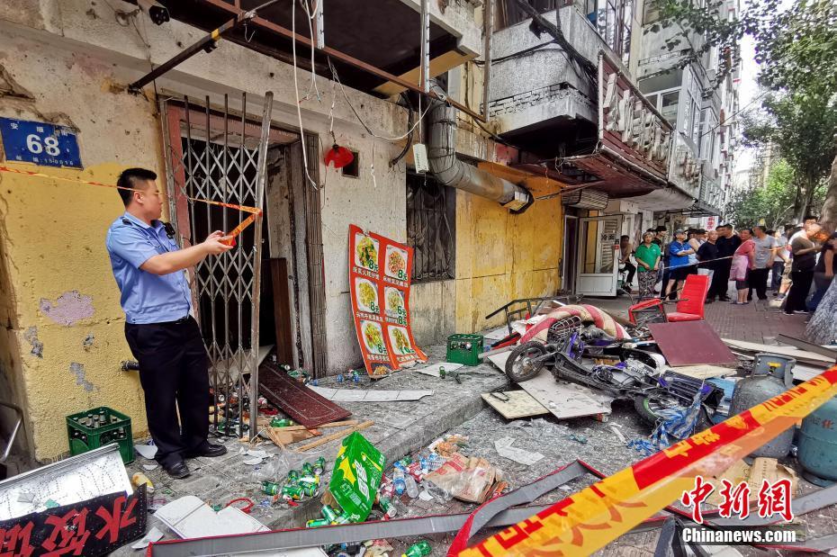 8月5日早8時(shí)左右,位于哈爾濱市道里區(qū)安順街的一家餐館發(fā)生疑似燃?xì)獗?,現(xiàn)場(chǎng)一片狼藉,爆炸震碎二樓樓板,一老人墜落受傷,餐館老板娘受傷嚴(yán)重,目前兩人已被送往醫(yī)院就醫(yī)。圖為事發(fā)餐館門(mén)口。中新社記者 范英杰 攝