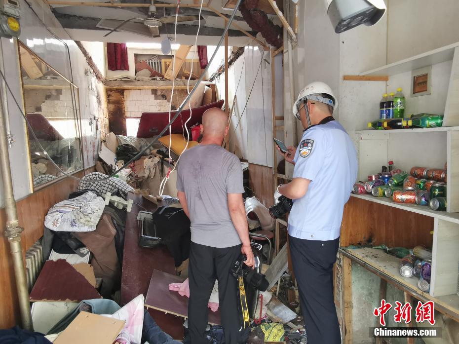 8月5日早8時(shí)左右,位于哈爾濱市道里區(qū)安順街的一家餐館發(fā)生疑似燃?xì)獗?,現(xiàn)場(chǎng)一片狼藉,爆炸震碎二樓樓板,一老人墜落受傷,餐館老板娘受傷嚴(yán)重,目前兩人已被送往醫(yī)院就醫(yī)。爆炸造成路邊多輛車(chē)輛受損,附近居民樓玻璃被沖擊波震碎。中新社記者 范英杰 攝