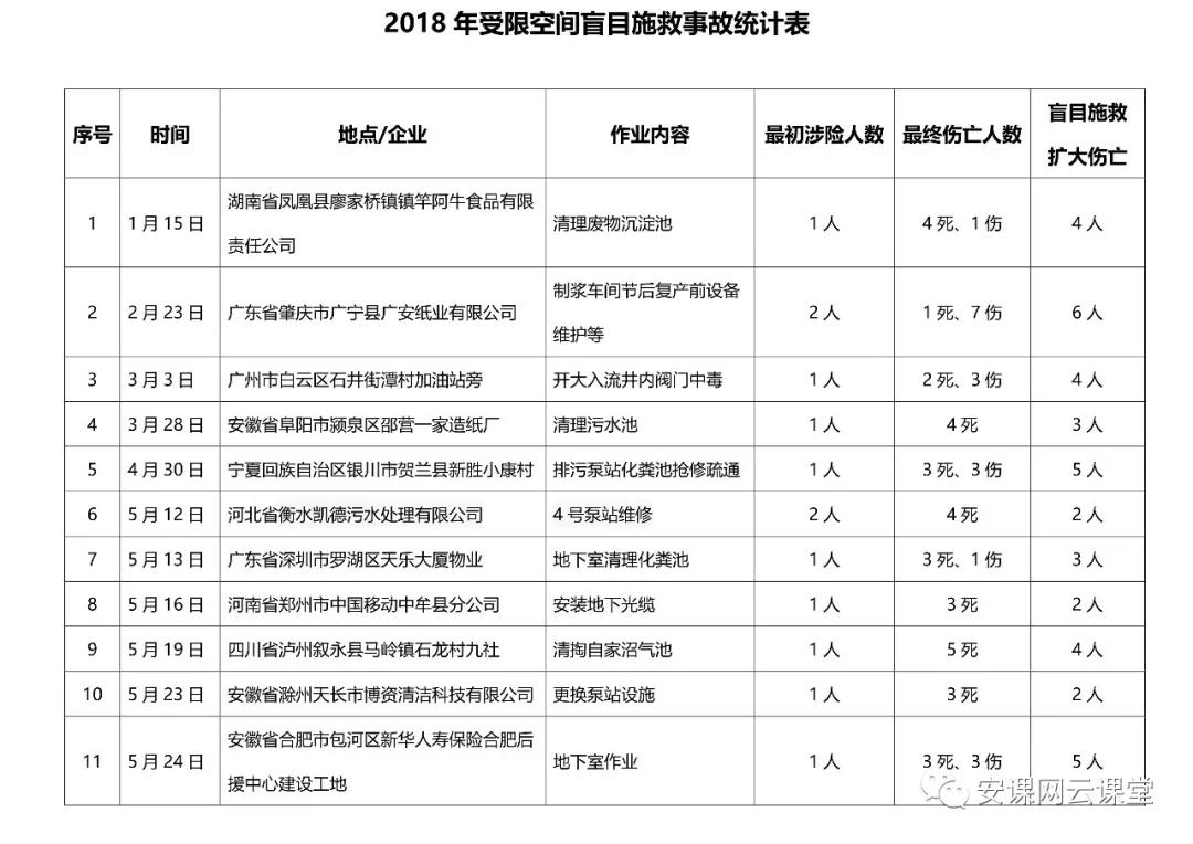 2018年受限空間盲目施救事故統(tǒng)計