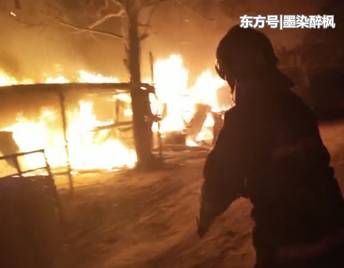 陽谷一板房突發(fā)火災,消防員奔向火場抱出煤氣罐