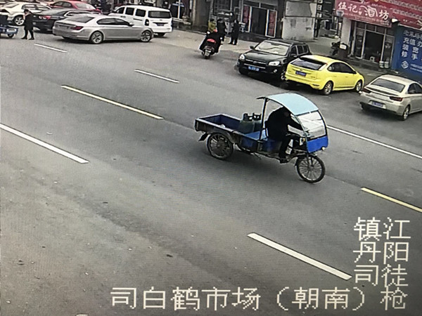功夫不負有心人,民警終于在丹陽丹伏路與觀鶴路交叉口,發(fā)現了拉了兩只煤氣瓶的嫌疑車輛。通過監(jiān)控跟進和倒查,警方鎖定了該車最后駛向丹陽司徒西麻村道里一段軌跡。但是,嫌疑人外貌特征不明顯。