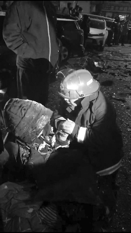 消防隊員從樓內背出多名傷者。記者看到,部分傷者頭部流血。“挺住啊,一定要堅持??!”一名男子捂著一名男性傷者的頭部,在刺骨的寒風中不住地鼓勵他。同時,有部分尚能自己行走的傷者在親人攙扶下被疏散到安全區(qū)域。