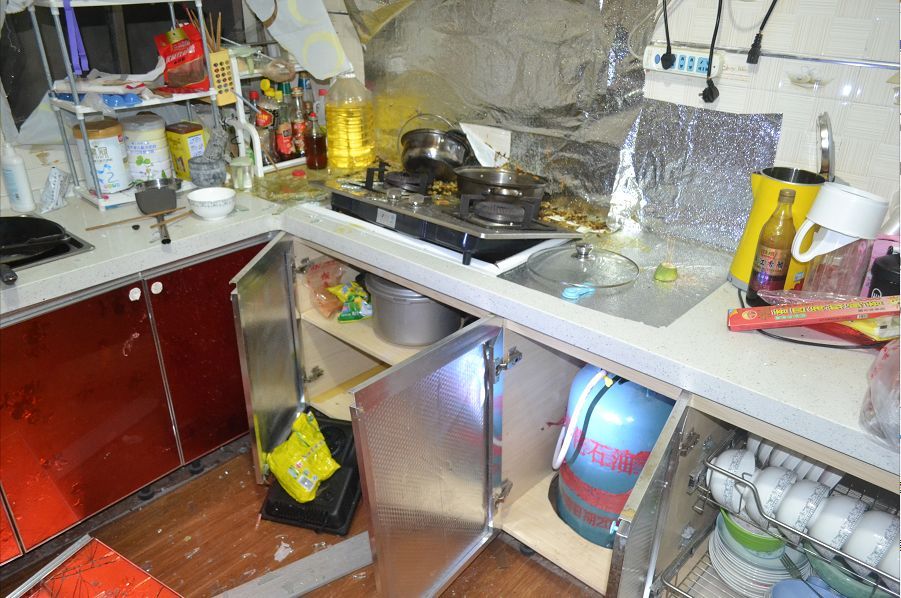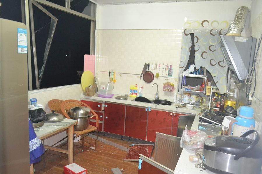 爆炸點位于新村鎮(zhèn)一村民楊某某家中的廚房,現(xiàn)場一片狼籍,窗戶也已經飛出窗外。幸運的是,爆炸發(fā)生時沒人在現(xiàn)場,未發(fā)生人員傷亡。