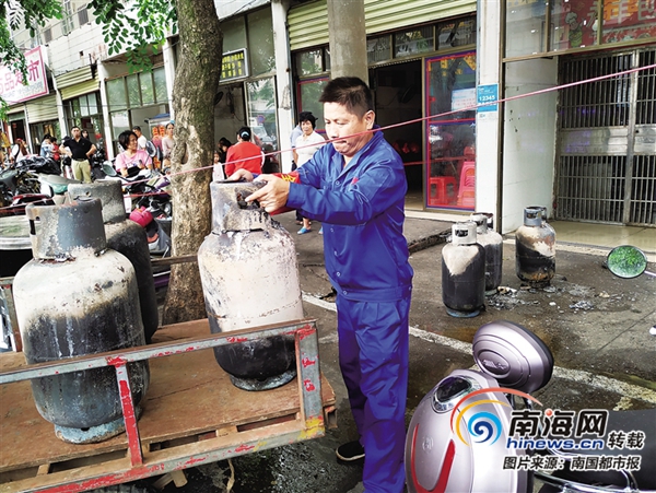海口一家早餐店煤氣泄漏引發(fā)火災(zāi) 店鋪燒毀6個(gè)煤氣瓶燒黑