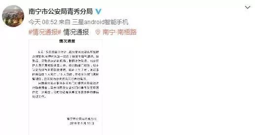 南寧市公安局青秀分局微博發(fā)布情況通報↓↓↓