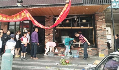 餐館門(mén)窗被炸飛