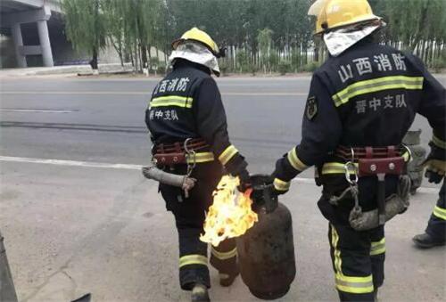 榆次:煤氣罐突然泄漏噴火 消防兵爭分奪秒轉(zhuǎn)移