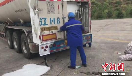 民警全程監(jiān)控天然氣運(yùn)輸車堵漏處置。高速交警 供圖