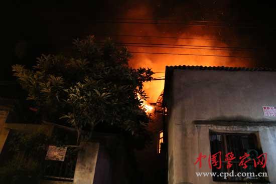 中隊(duì)官兵到達(dá)現(xiàn)場后,只見起火民房火勢較大,正處于猛烈燃燒階段。消防官兵經(jīng)現(xiàn)場詢問知情人和火情偵察得知,起火點(diǎn)是二樓右側(cè)的一間房屋里的煤氣罐,并發(fā)生了一次爆炸,火勢把二樓4間房房頂全部引燃,二樓房間地面被炸穿,火苗落到一樓室內(nèi)引燃了一樓的一間房屋,屋內(nèi)無人員被困。