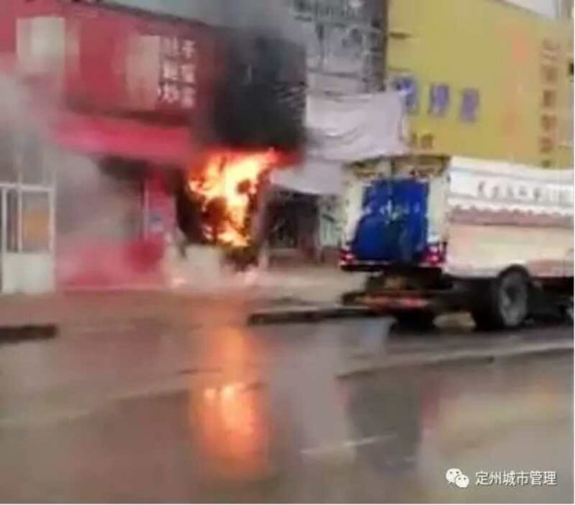 " 當(dāng)時我正開著洗掃車正常作業(yè),距離起火點(diǎn)大約 50 米。當(dāng)時車?yán)镞€剩下大約 1 噸水,正準(zhǔn)備回去灌水。" 定州市昌潤達(dá)環(huán)衛(wèi)公司員工韓廣亮向記者回憶道。他先是看到了濃煙,后來從廚房排風(fēng)窗看到了噴吐出來的火舌。韓廣亮想都沒想,開起車向起火的飯店沖去!他把洗掃車停在飯店旁邊,不顧烈焰的炙烤和刺鼻的焦煙味兒,抄起噴水槍勇敢沖了上去!