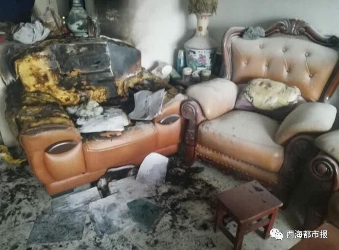 走進事發(fā)的住戶家,屋里一片狼藉,沙發(fā)、電視機、洗衣機、電燈開關等物品被燒,臥室和客廳的玻璃碎了。家里養(yǎng)的小貓蜷在陽臺上一動不動,它的嘴巴在流血,胡子和尾巴被燒。