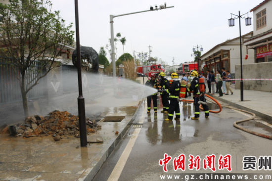 中新網貴州新聞6月21日電(通訊員 史代藻 羅天陽)安順市西秀區(qū)舊州鎮(zhèn)文昌路天然氣管道20日11時59分發(fā)生泄漏,黃果樹大街消防中隊聞警迅速出動處置。